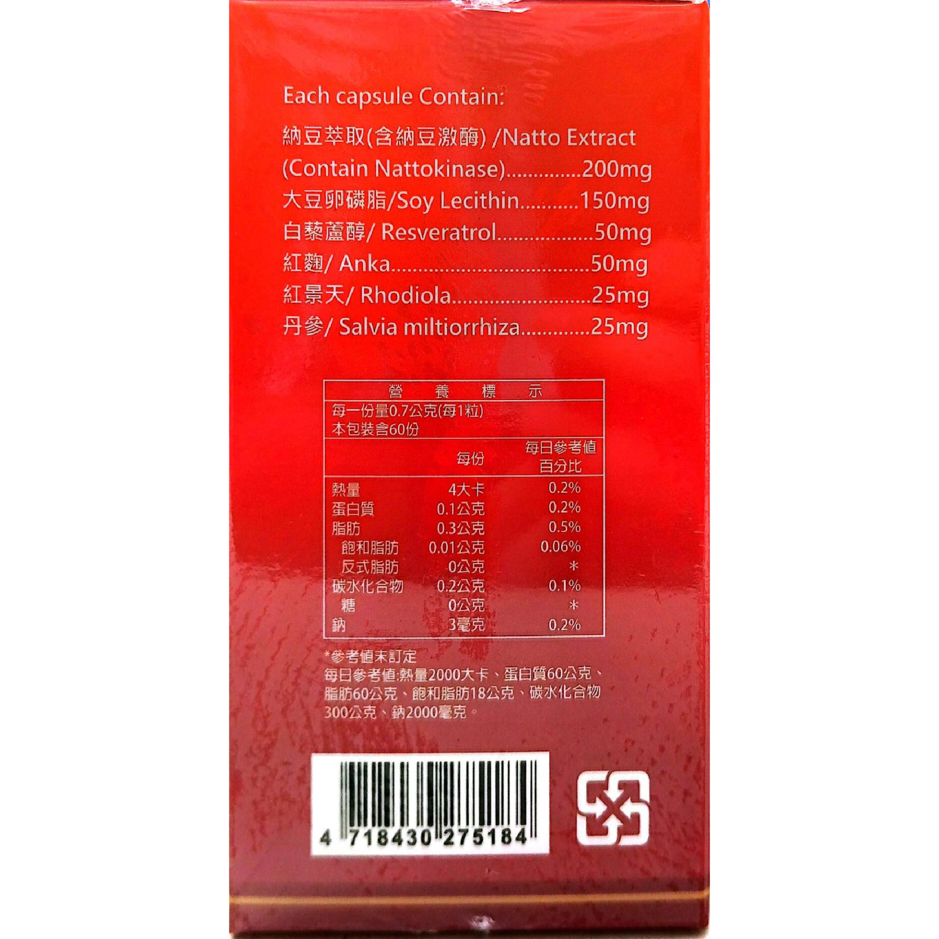 納豆萃取(含納豆激酶) 200mg